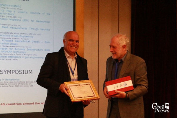 Bernard Cambou教授为Gomes Correia教授颁奖