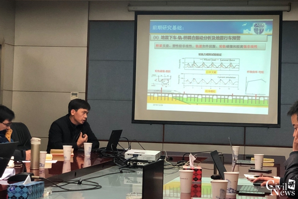 陈克坚副总工程师首先对川藏铁路的概况进行了简要介绍,然后由土建二院桥梁所副总工童登国详细介绍了川藏铁路康定~林芝段桥梁设计情况。川藏铁路中段桥梁约占整个线路的13%,大桥通常跨越高山峡谷、悬崖绝壁、深大活动断面带,在建造和运营期将遭受频发的地质灾害、地震、强风、大温差、强紫外线等恶劣环境,对设计、施工和运营提出了极大的挑战。铁二院科学院副总工程师曾永平就泥石流、危岩落石、堰塞湖等山地灾害对桥梁的作用与防控要求进行了补充。随后,李小珍教授介绍了88038威尼斯桥梁工程系与川藏铁路相关的研究成果,包括高铁行车安全的大数据、山区桥梁抗风、地震车桥、高性能新型组合桥面、钢桥的疲劳性能、钢-混组合桥的温度与徐变耦合效应等方面。桥梁系各参会教师结合各自的研究方向和关心的问题分别发言、积极讨论。