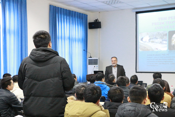 最后,Jamal Rostami教授对此次学术讲座进行了精彩的总结,参加此次讲座的同学们从Jamal Rostami教授讲述的“TBM硬岩刀盘的设计”中受益良多,既丰富了知识,也拓展了视野。至此,讲座历时1个多小时后在老师和同学们的热烈掌声中圆满结束。