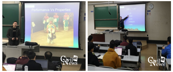 讲座正式开始前,丁院长向在座的师生介绍了自己从高校到施工企业这段独特的经历,并表示这一经历带给了自己不一样的感受,使得自己有很大体会。接着,丁院长以“新贵妃醉酒”图作为开场白回到了讲座的主题。