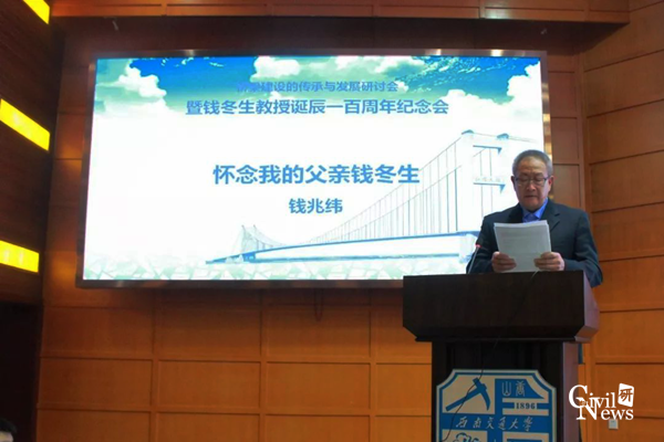 随后,钱冬生教授的学生强士中教授、校友凤懋润总工程师以及钱冬生教授家属钱兆纬先生分别对钱冬生教授一生的学术研究、教学及家庭进行了回顾。缅怀钱冬生教授作为学者对学术研究专注,作为老师对学生和作为父亲对子女孜孜不倦的教导,以及为我国桥梁建设的大发展做出的突出贡献。