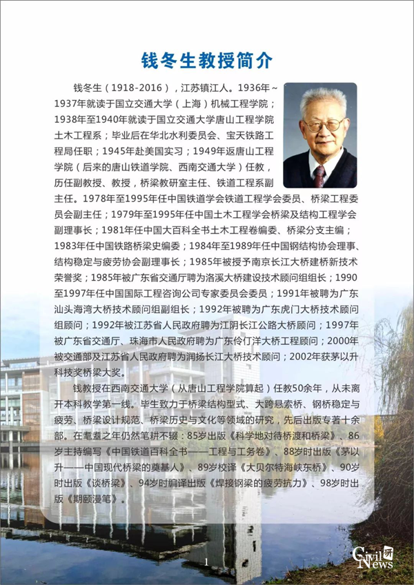 钱冬生教授(1918-2016)是我国钢桥设计理论的奠基人,现代悬索桥的开拓者,桥梁工程教育的先行者。时值钱冬生教授诞辰一百周年之际,为推动桥梁科学理论及应用技术的发展,加强业界同仁的合作与交流,桥梁建设的传承与发展研讨会暨钱冬生教授诞辰一百周年纪念会于2018年12月9日在88038威尼斯顺利召开。
