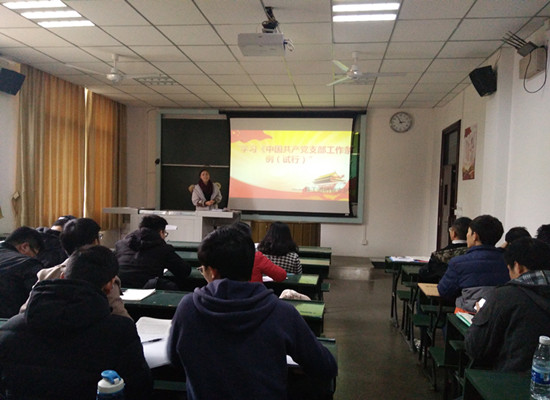 2018年11月29日,铁工道桥党支部在4306召开了“从严治党”专题学习活动,会上与会成员还深入开展了对国内外经济新形势和《中国共产党支部工作条例(试行)》的集中学习。会议由支部书记喻夏主持。