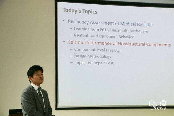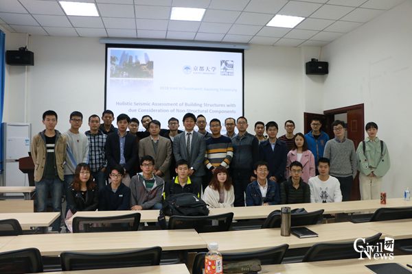 10月18日至21日,根据合作计划,日本京都大学防灾研究所仓田真宏副教授到我校进行基于FGC的损伤可控组合钢框架抗震性能联合试验,20日于隧道楼101会议室开展了题为考虑非结构构件的建筑结构整体性抗震性能评价的学术讲座。