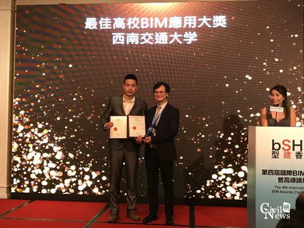 由buildingSMART型建香港组织主办的“第四届国际BIM大奖赛暨高峰论坛” 于2018年10月15日于马哥孛罗香港酒店(香港尖沙咀广东道3号)隆重举行颁奖典礼。我校研究生文志彬、赵一丁、吴承伟、朱权龙在杨万理副教授指导下完成并提交的参赛作品——《基于BIM技术的建筑全生命周期正向设计实施过程研究与应用》从来自中国、中国香港、新加坡、英国、美国、澳洲、马来西亚、韩国及日本等国家和地区的500多份参赛作品中脱颖而出,获得“最佳高校BIM技术应用奖”。