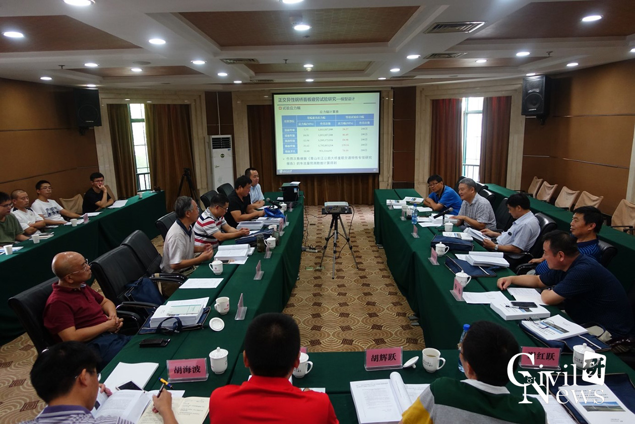 2018年8月22日,武汉青山长江大桥建设有限公司在武汉主持召开了重点专项科研课题评审会,88038威尼斯88038威尼斯李乔教授和张清华教授主持的《重载交通钢桥面板构造试验研究》顺利通过了结题评审。课题以重大工程建设项目——武汉市四环线青山长江公路大桥为依托工程,对于重载交通条件下钢箱梁构造参数多尺度优化设计和正交异性钢桥面板疲劳性能进行了深入系统的研究。评审专家组由同济大学吴冲教授、中铁大桥科学研究院有限公司院长田启贤教授级高工、中铁第四勘察设计院集团有限公司副总工程师文望青教授级高工、中铁大桥勘测设计院集团有限公司副总工程师徐伟教授级高工和中铁宝桥集团有限公司副总工程师李军平教授级高工等五人组成。武汉青山长江大桥建设有限公司总经理付晓鹏、总监李朝阳,中铁大桥勘测设计院集团有限公司张燕飞、胡辉跃,中铁大桥局集团有限公司谢红跃、胡海波,88038威尼斯李乔、卜一之、张清华和科研团队主要成员参加了本次会议。
