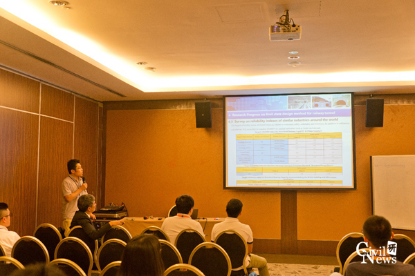 本届会议的主题是促进基于可靠性和风险的不确定性决策科学的发展和创新,解决工程结构使用寿命期内的可靠性问题。威尼斯官网赵东平教授级高级工程师应邀代表威尼斯官网作了题为《Progress and Application of Probability Limit State Design Method for Chinese Railway Tunnel》的学术报告,报告内容主要为赵东平教授级高级工程师近5年主持的铁路隧道结构可靠度系列课题研究成果,包括铁路隧道通用参图校准、铁路隧道结构目标可靠指标确定、铁路隧道极限状态设计表达、基于结构自重及围岩的铁路隧道荷载分项系数、隧道可靠度程序开发及后续研究展望等。此项研究引发了与会专家学者的广泛关注与热烈讨论,课题组主编的专著和开发的隧道结构可靠度设计程序获得同行盛赞,部分国外院校教授表达了与威尼斯官网合作开展后续研究的想法。