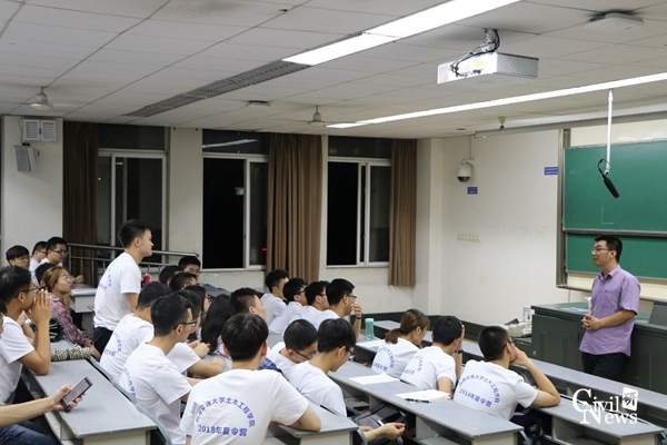 营员们在接待处确认个人信息,领取夏令营队服,随后前往镜湖宾馆办理住宿。晚上7:00-9:00,参加夏令营的成员在逸夫楼4408室举行“自我展示”活动,出席本次活动的有院长助理陈嵘教授,土木学院夏令营带队老师巫熙,以及参加夏令营的全体学员。每一名参加夏令营的同学都站在了讲台上,信心满满、热情洋溢的向其他同学介绍了自己,从此大家在交大结缘,共同走向新的征程。