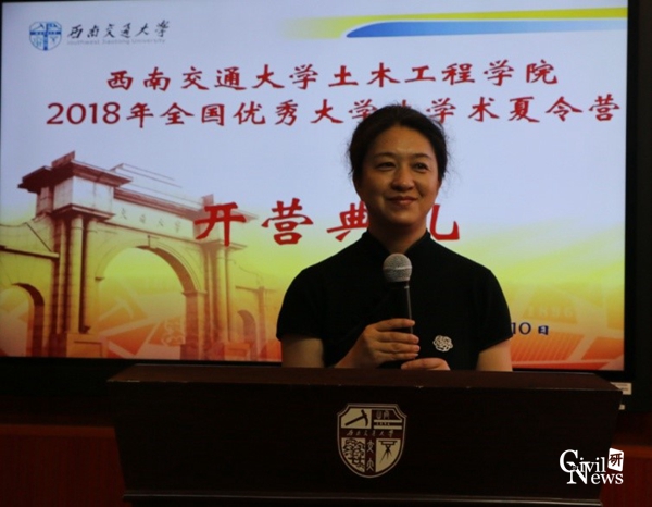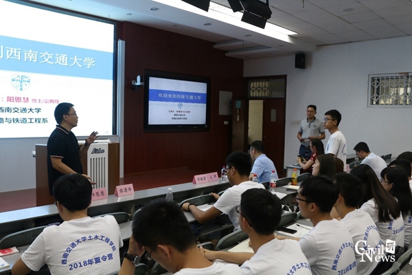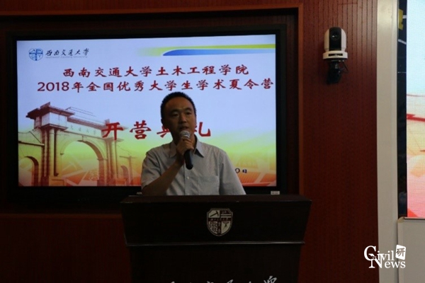 下午14点,全体营员准时聚集在逸夫馆4105进行了学术交流活动,聆听各系室分管研究生工作的副主任讲解各系教学科研的具体情况,包括各系室的研究方向、研究团队、研究成果和获奖情况。同时,来自西南勘察设计院的王新高级工程师就个人在专业提升和工作中的心得与大家进行了分享。全体营员聚精会神,表现出了浓厚的兴趣,讲解结束后纷纷举手提问,问题直击当下研究热点,高手层出不穷,得到在场老师的肯定和细心解答。
