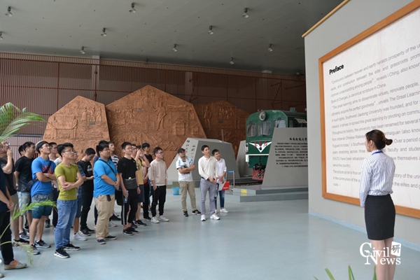 师生听取讲解员介绍西南交大变迁