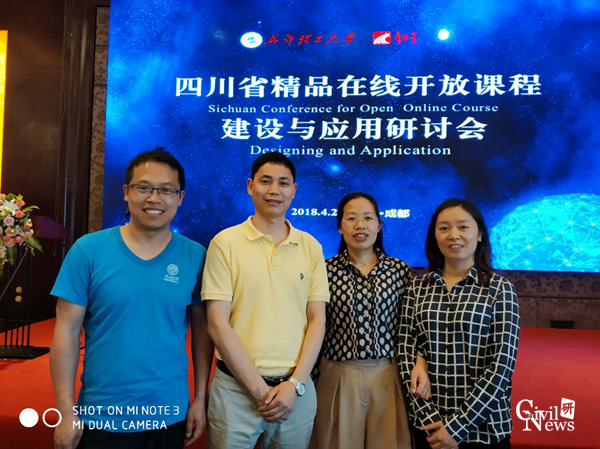 2018年4月27日下午,威尼斯官网教师申玉生、赵坪锐、张爱玲以及赵菊梅(峨眉)等四名老师受学校委派参加了在成都理工大学举办的“四川省精品在线开放课程建设与应用研讨会”。