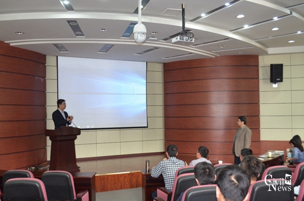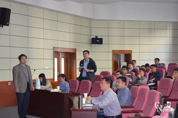 讲座开始前,赵灿晖教授首先对王涛研究员作了简单介绍,并对他的到来表示欢迎。王涛研究员在本次讲座中主要针对课题组近15年来的工作进行总结,讲述了主从式、分离模型式、对等子结构混合试验的原理与应用。他首先指出当前工程结构的“大型化”与“复杂化”,抗震安全面临着严峻挑战。但是现有研究技术手段却存在很多不足之处:拟静力试验加载路径单一而振动台试验的模型比例过小,数值模拟中本构模型也需要试验来进行标定,而混合试验系统却可以充分发挥数值模拟和物理试验的优势。接下来王涛研究员从子结构混合试验理论(数物协同问题与边界协调问题)、子结构混合试验平台(动静分离模型与对等子结构)、子结构混合试验应用(隔震结构碰撞试验、SRC结构地震相应模拟、钢结构倒塌模拟)三个方面对子结构混合试验进行了详细阐述。对于其科研成果,王涛研究员将之总结为三个试验系统框架(主从结构、分离模型、对等子结构混合试验系统),三种边界协调方法(拟牛顿法、重叠领域概念、非线性多自由度边界控制),一个原则(划分子结构原则——整体与局部响应相结合)。最后,王涛研究员还提到基于性态地震工程的新需求:解决不同性质多物理域的耦合协调、不同物理场的动力仿真、复杂结构边界条件的准确再现、瞬变物理场的动力仿真、多动力系统的同步、灾情的快速获取与评估。他希望大家可以针对这些工程领域的新需求开展更多的研究。