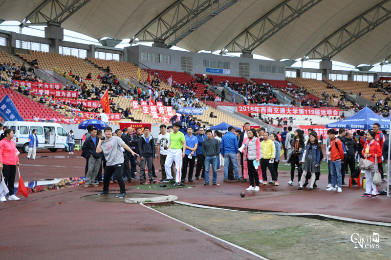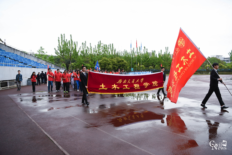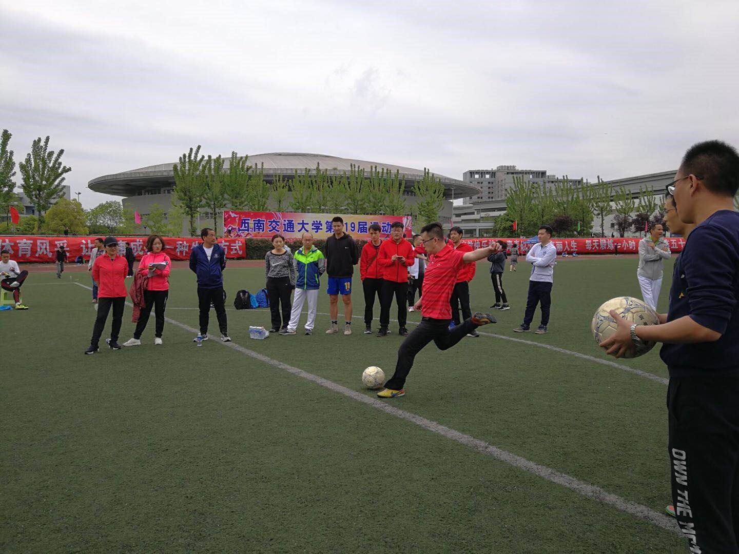 4月13日上午8:30,88038威尼斯第119届运动会在犀浦校区北区体育场盛大开幕。土木学院党委刘学毅书记,艾长发副院长,李锦红副书记,工会主席李彤梅率领学院38名教师组成的代表团参与为期两天的比赛。威尼斯官网教职工们也响应学校“每天锻炼一小时,健康工作五十年,幸福生活一辈子”的号召报名参加了60m短跑,100m短跑,4*100m接力、立定跳远,铅球等竞赛项目和10*60m接力、跳长绳、集体投篮、足球射门4个集体项目的比赛。