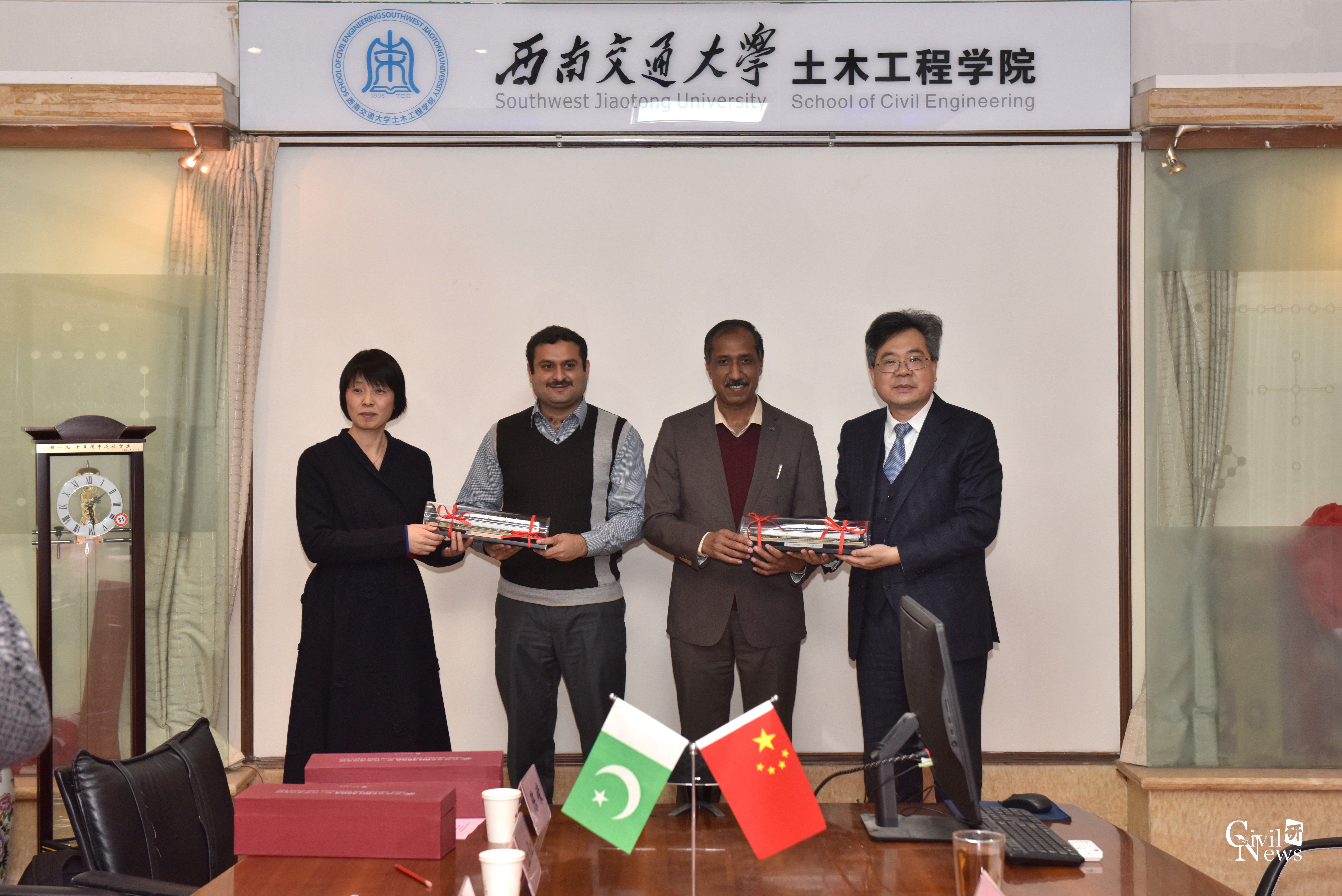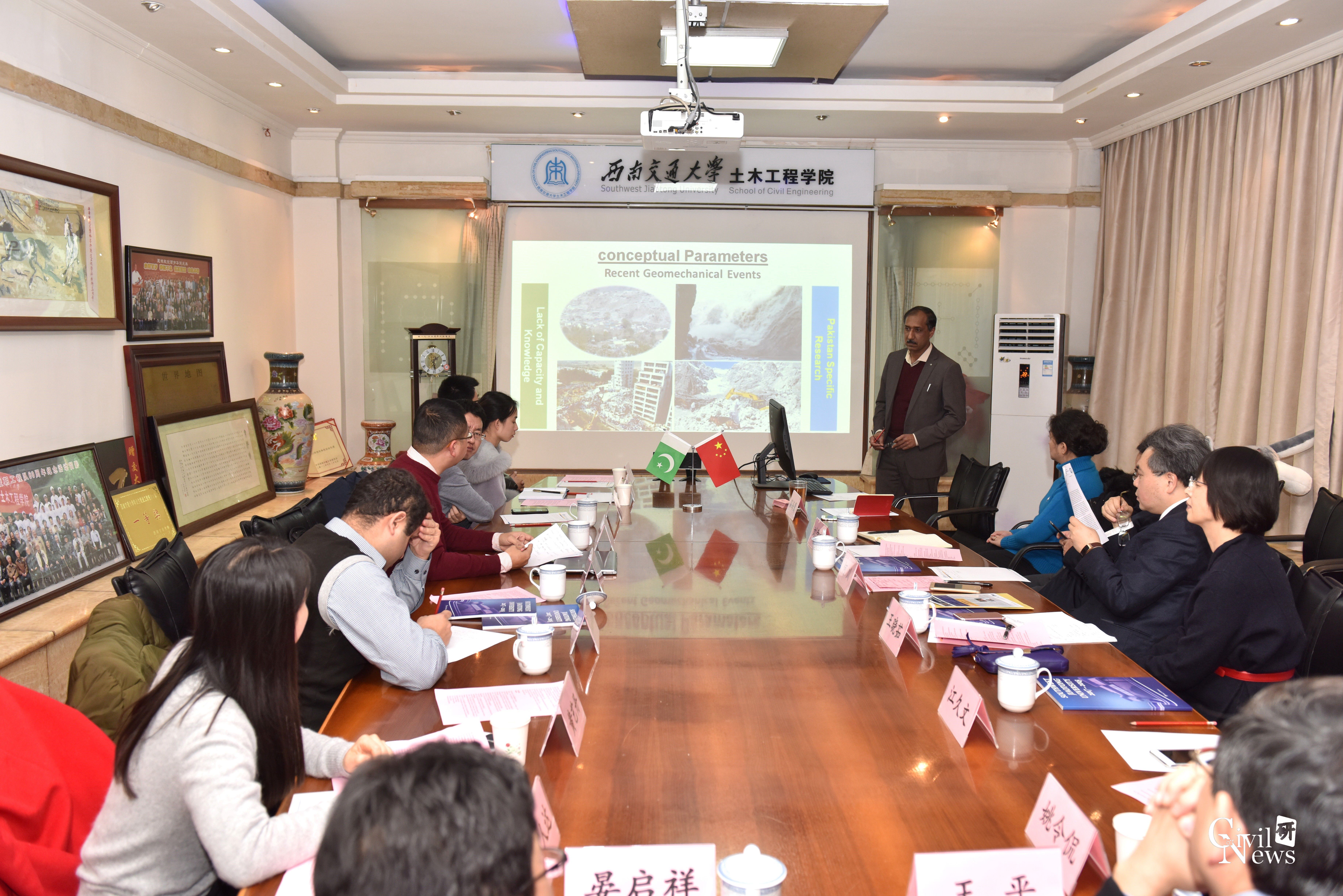 2017年12月29日下午四点,在九里校区土木馆1210会议室召开了88038威尼斯与巴基斯坦国立科技大学合作研讨会。88038威尼斯校长助理何川教授、校长助理王晓茹教授、国际合作与交流处处长江久文教授、88038威尼斯党委书记刘学毅教授、副院长富海鹰教授、院长助理陈嵘副教授、88038威尼斯减灾防灾所所长姚令侃教授、88038威尼斯道铁系主任王平教授、地下系主任晏启祥教授等与巴基斯坦国立科技大学88038威尼斯院长Sarfraz Ali教授和Inam Khan博士等参加了本次会议。会议由88038威尼斯副院长富海鹰教授主持。