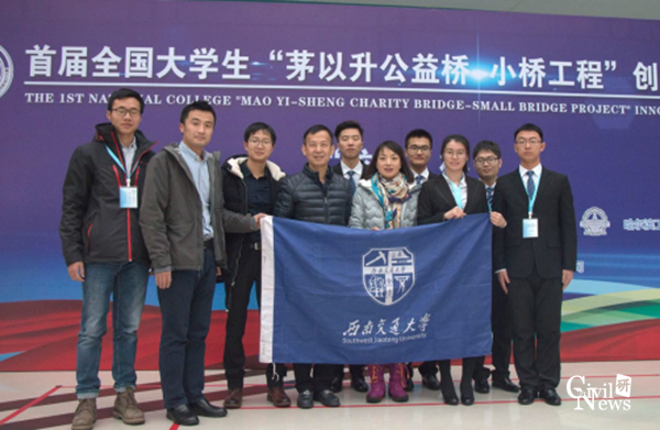 12月9日至10日,由交通运输部直属机关团委、北京茅以升科技教育基金会和哈尔滨工业大学共同主办,首届全国大学生“茅以升公益桥-小桥工程”创新设计大赛在哈尔滨工业大学举行。大赛吸引了来自清华大学、浙江大学、同济大学在内的22所高校的49支队伍报名参赛。我校『茅以升公益小桥』团队提交的湖北麻城中馆驿镇曹家坳村彭家垸小桥的拱桥方案获得二等奖。