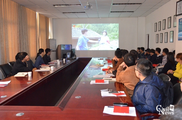 会议开始,播放《山谷中挺起不倒的脊梁》和《为灾区群众撑起一片天》专题片。全体人员一起回顾那段地动山摇、触目惊心的灾难时刻,一起感受人与人之间的温情瞬间。