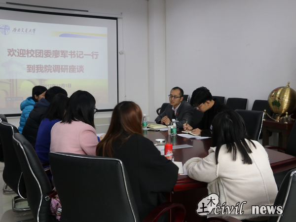 12月1日上午10:30,校团委与88038威尼斯分团委调研交流座谈会于犀浦校区X4312会议室如期举行。与会人员有:校团委书记廖军、校团委兼职副书记陈景适,88038威尼斯分团委书记刘萍、分团委副书记付真珍、分团委副书记黄雪娇、青年志愿者协会指导老师向京华、学生运动健康促进中心指导老师代镇洋、学生文化发展中心指导老师张素子。