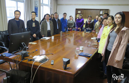 教职工党员在会议室认真观看十九大开幕会