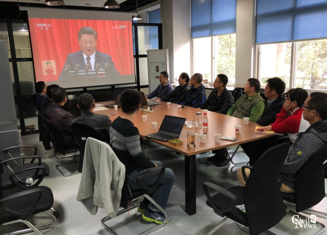 习近平总书记指出,本次大会是在全面建成小康社会决胜阶段、中国特色社会主义进入新时代的关键时期召开的一次十分重要的大会。不忘初心,方得始终,中国共产党人的初心和使命就是为人民谋幸福,为中华民族谋复兴,这个初心和使命是激励中国共产党党员不断前进的根本动力,全党同志一定要与人民同呼吸、共命运、心连心,永远把人民对美好生活的向往作为奋斗目标,以永不懈怠的精神状态和一往无前的奋斗资态继续朝着实现中华民族伟大复兴的伟大目标奋勇前进。在整个大会过程中,所有人员聚精会神聆听习近平总书记重要讲话内容并做好记录,环境认真严肃,不时爆发热烈掌声,大家都为中国的强大和复兴感到激动和骄傲。
