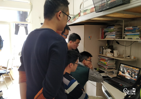 同学们在工作室认真观看十九大开幕会