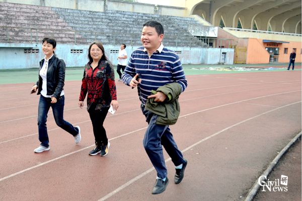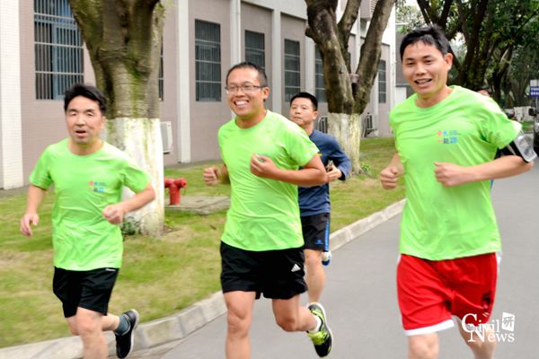 起跑后,毛坚强、赵坪锐、申玉生三位老师一直处于领跑位置,并且率先到达了体育场。后面的老师也不甘示弱,奋起直追,也有很多老师根据自身的情况选择不同的健身速度进行锻炼。大家相继到达运动场后,很多老师绕着操场继续奔跑,汗水浸湿了衣裳,但运动的带来的幸福洋溢在每位老师的脸上。