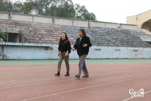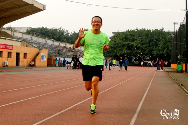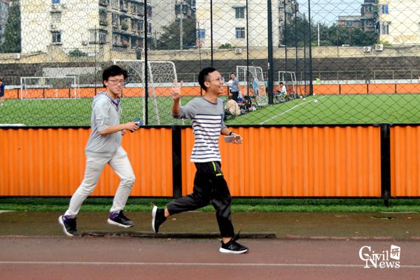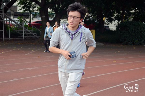 运动场内的志愿者认真负责地为每一位结束奔跑的老师记录成绩,但是最早到达运动场的两位老师一直没有结束比赛。毛坚强老师步伐稳健,呼吸均匀,每次经过志愿者服务点时都同已完成比赛的老师们挥手致意,速度却丝毫不逊于年轻的跑者。完成比赛时,毛老师奔跑总里程12.57千米,用时1小时02分19秒,这样的成绩令很多在场的研究生志愿者都钦佩不已。而赵坪锐老师则是力量和速度的代表,一直领跑在前,汗水洒落在他的身后,但脸上却始终绽放着笑容。下午17时30分,坚持到最后的赵老师终于选择结束比赛,但结束比赛的赵老师仍然意犹未尽,腿上跳动的肌肉仍然表达着想要继续奔跑的渴望。赵老师共计奔跑了14.3千米,用时1小时06分59秒,是实至名归的第一名。
