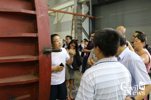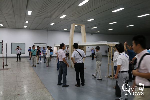 李志国老师为与会人员介绍XNJD-3风洞实验室内的试验加载情况