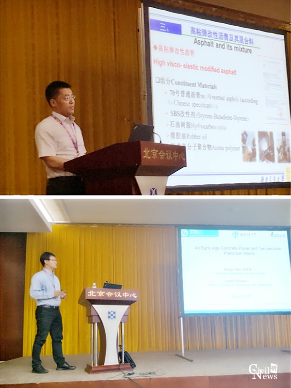 艾长发教授和任东亚老师在路面材料分会场做报告