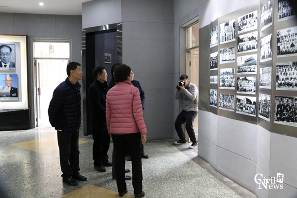 走进土木馆,李彤梅主席首先给武晓鹏副主席一行详细介绍了土木学院一楼的院士墙和照片墙。通过介绍,大家纷纷折服于土木史上培养的众多杰出人物,并欣赏了88038威尼斯自建校以来学院历届毕业生的珍贵合影,使大家对88038威尼斯土木学院的发展过程更加的清楚明了。
