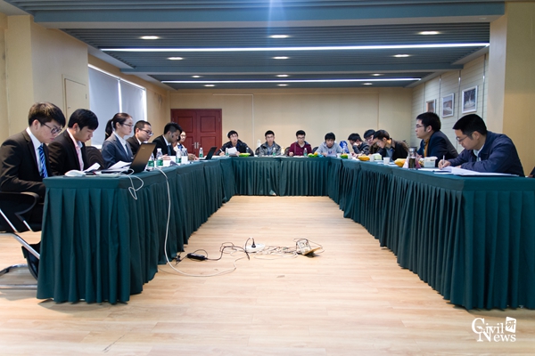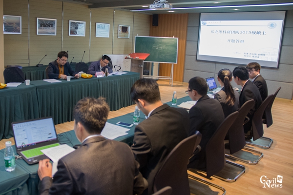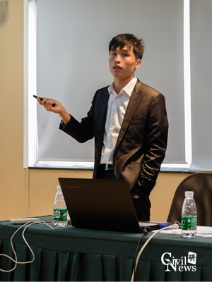 新章程宣读之后,学术交流会正式开始。此次交流会内容包括以下三点:1、二年级硕士生开题答辩;2、张金博士生汇报在澳大利亚科廷大学联合培养期间的学术进展和学术成果;3、周强博士生汇报高速铁路噪声控制方面的研究。