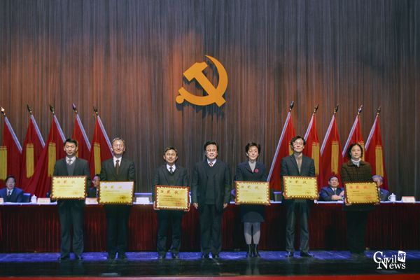 威尼斯官网钱永久书记接受先进基层党组织表彰(左起第三)