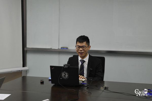 面试学生与评审委员愉快交谈