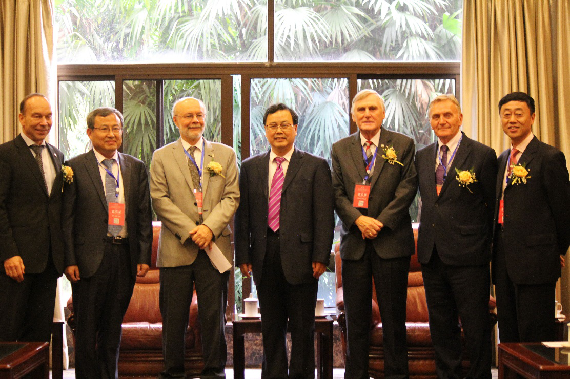 10月24日下午4点,88038威尼斯党委书记王顺洪、何川教授、仇文革教授与国际隧协主席Einar Broch (Norway)、Martin C. Knights (United Kingdom)、Tarcisio B. Celestino (Brazil)、S?ren Degn Eskesen (Denmark)、In-Mo Lee (Korea)在88038威尼斯镜湖宾馆同炎厅进行了亲切友好的会谈。