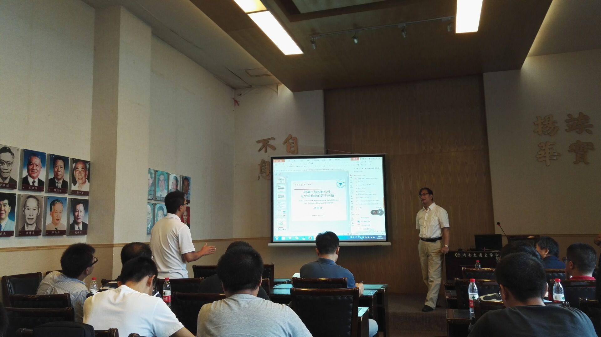 金教授的讲座不仅让我们学习到了双向电渗修复技术的工艺参数优化及控制,同时也了解到双向电渗对混凝土孔隙结构、钢筋混凝土界面以及受力钢筋的作用和影响。和一般电化学修复技术相比,双向电渗技术不仅有效地提高混凝土耐久性,而且适用各类混凝土结构,大大拓展了工程应用范围。