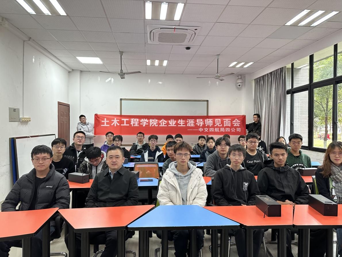 见面会伊始,刘书停导师向同学们致以亲切问候,他同时深入介绍了中交四航局所承包的中外业务、公司发展优势以及代表项目,向同学们生动地展示了中交四航局在建筑工程领域的实力,特别展示了公司在技术、项目管理和团队协作方面的优势。这次介绍旨在帮助同学们更全面地了解建筑行业,并为未来的职业决策提供实际参考。刘书停导师的分享,为同学们描绘了一张真实的职业发展图景,为同学们在职业生涯的探索中提供帮助和指导。