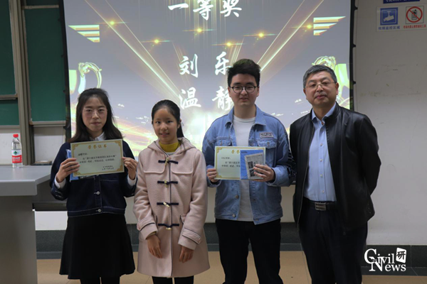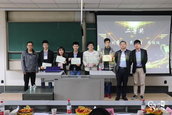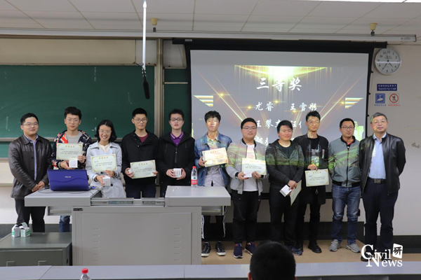 经过一番激烈的较量,决赛持续到下午四点。各位评委老师对比赛进行了总结,铁二院的各位评委嘉宾称赞各参赛选手准备充分,活动有效地锻炼学生的综合能力,效果良好,希望团队所有成员今后继续努力,取得更好的成绩。王平教授对各位参赛选手认真积极对待比赛地态度以及提升自我做出的努力给予极大的肯定,同时指出在PPT制作技巧及演讲者自我表达能力等方面仍然需要不断地努力和改进,希望每一位研究生要不断去完善自我,提升自我,精益求精,并对下一届比赛提出了更高的要求。最后,王平教授宣布此次比赛结果:一等奖获得者为刘乐、温静;二等奖获得者为:刘鉴兴、戴佳程、周佳仪、邹鑫、马前涛;三等奖获得者为王攀杰、王雪彤、尤睿、汪健辉、郭强、王凯、王刘翀、董志国。最后为比赛组长李朋颁发“特殊贡献奖”,以表彰他在此次比赛指导师弟师妹PPT制作技巧及演讲方式中所做出的努力。