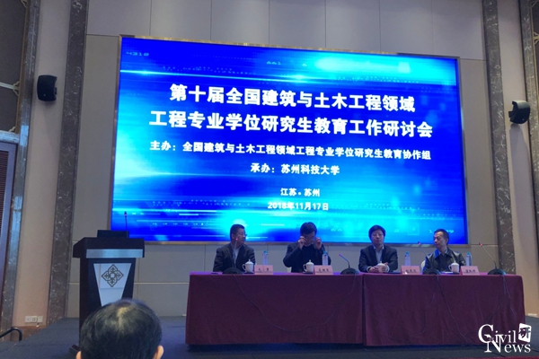 为落实教育部、全国工程专业学位研究生教育指导委员会的有关文件精神,进一步推进建筑与土木工程领域专业学位研究生教育教学改革和内涵发展,不断提高专业学位研究生培养质量,2018年11月16-17日,由全国建筑与土木工程领域工程专业学位研究生教育协作组主办、苏州科技大学承办的第十届全国建筑与土木工程领域工程专业学位研究生教育工作研讨会在苏州顺利召开,来自全国86所高校的近200名代表参加研讨会。