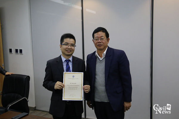 2018年10月20日上午,香港理工大学刘耀鹏高级研究员受聘威尼斯官网客座教授暨捐赠NIDA软件仪式在88038威尼斯防护结构研究中心举行。仪式由建筑工程系余志祥主任主持,聘请香港理工大学土木与环境工程学系刘耀鹏高级研究员为威尼斯官网客座教授,88038威尼斯刘学毅书记出席仪式并为刘耀鹏博士颁发了客座教授聘书。