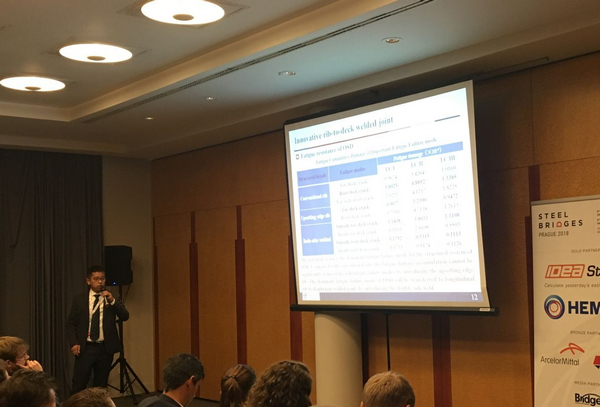 第9届ISSB国际钢桥学术会议由欧洲钢结构协会主办,捷克钢结构协会承办,于2018年9月10至11日在布拉格隆重召开,来自30多个国家的约200多位专家学者参加了本次大会。国际钢桥会议旨在促进钢桥设计、制造、施工、管养、加固等领域的最新研究成果的学术交流,在国际钢桥行业具有重大影响。博士生李俊作了题为《Fatigue failure modes and fatigue resistance evaluation for structural system of orthotropic steel bridge deck》的学术报告,介绍了高性能桥梁研究团队在正交异性钢桥面板疲劳失效模式和疲劳抗力方面的最新研究成果,引起了国内外同行强烈的反响,就相关问题进行了深入讨论。