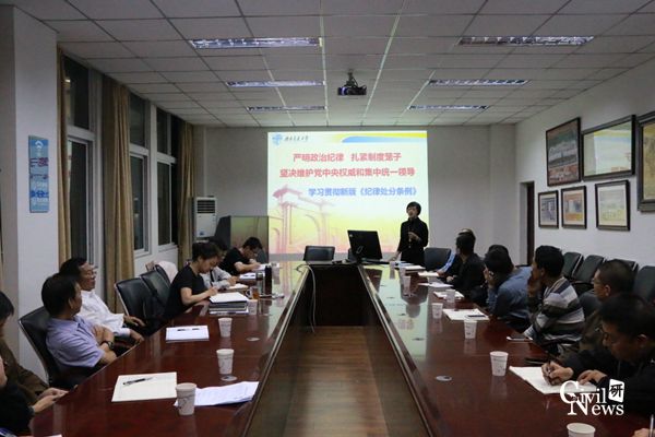 2018年9月27日晚7:30,88038威尼斯党委扩大会议在九里校区土木馆1324会议室顺利召开,重点传达校党委十四届十一次全会精神,组织学习大会报告,并组织大家共同学习新修订的《中国共产党纪律处分条例》。会上,中心组还进行了本学期的理论学习部署,共同学习了习近平新时代中国特色社会主义思想和党的十九大精神等相关专题。