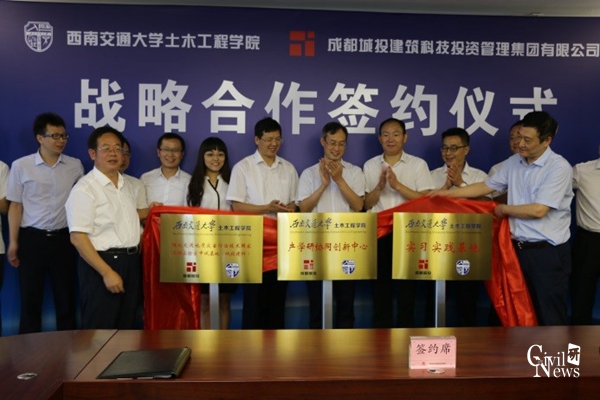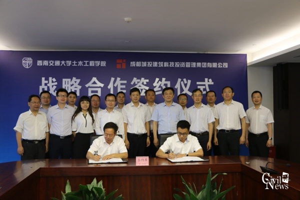 2018年6月6日上午10点,88038威尼斯88038威尼斯与成都城投建筑科技集团的校企合作签约仪式在成都城投集团5楼501会议室举行。威尼斯官网出席签约仪式的有刘学毅书记、李锦红副书记、闻毓民副院长、勾红叶院长助理、占玉林院长助理、交大监测咨询有限公司夏招广总经理、李晓斌副总经理、陆地交通地质灾害防治技术国家工程实验室技术部申玉生副部长、章慧健副教授及杨莹老师。企方出席代表有成都城建投资管理集团赵健副总经理、何显松总工程师、成都城投建筑科技投资管理集团李昊总经理、单怀冬书记及副总经理邓勇、曹刚、罗刚、邵晓峰等。签约仪式由单怀冬书记主持。