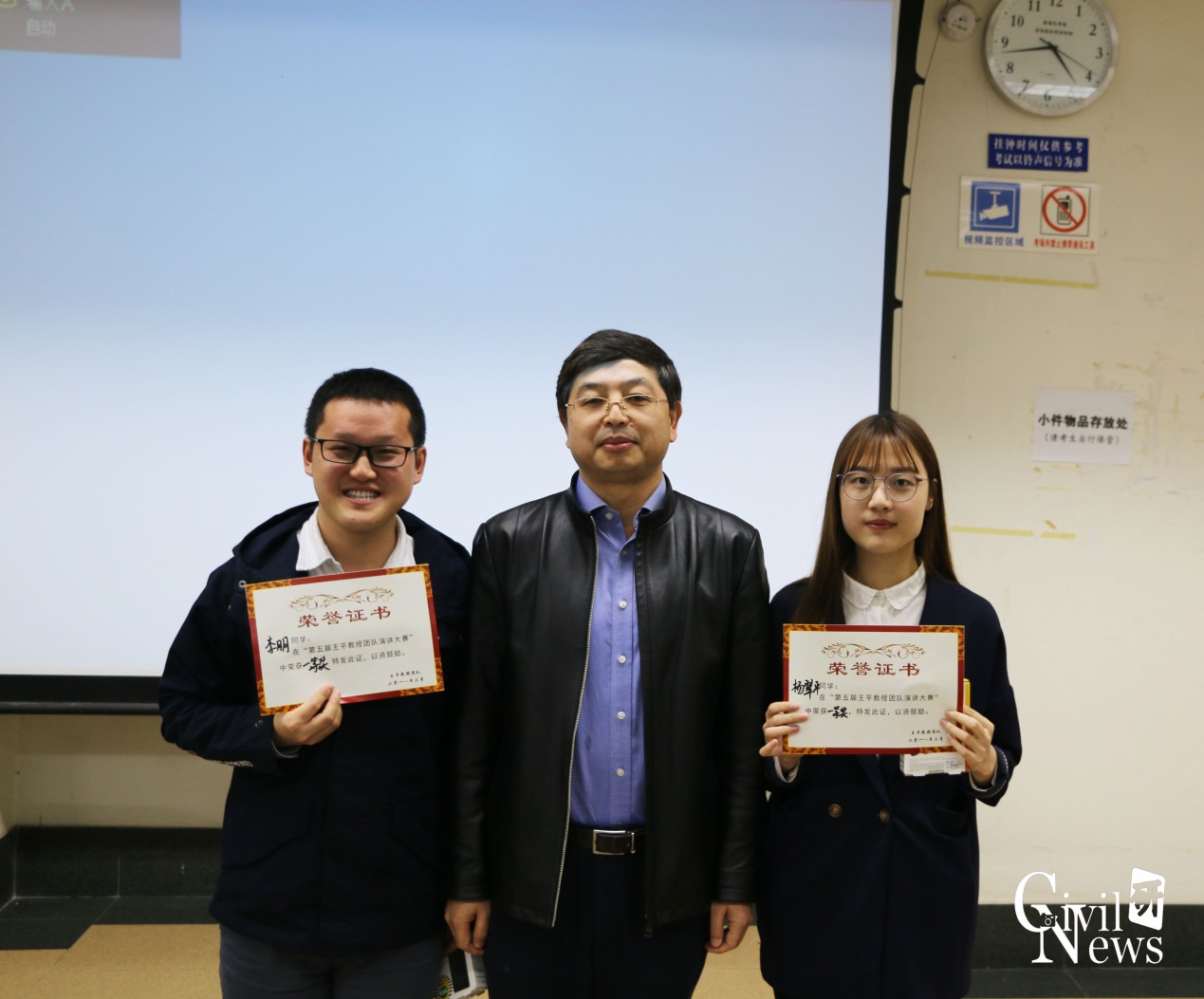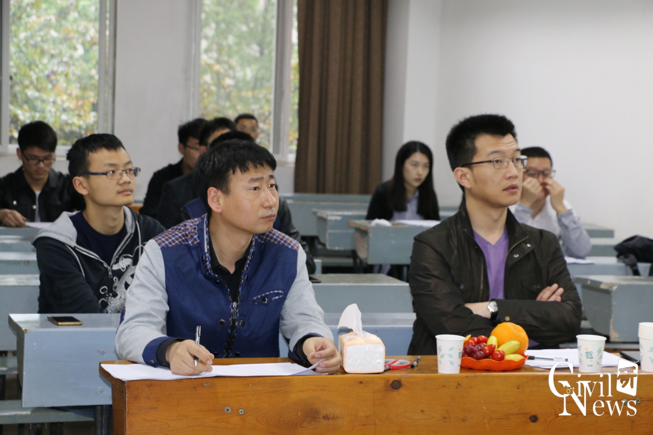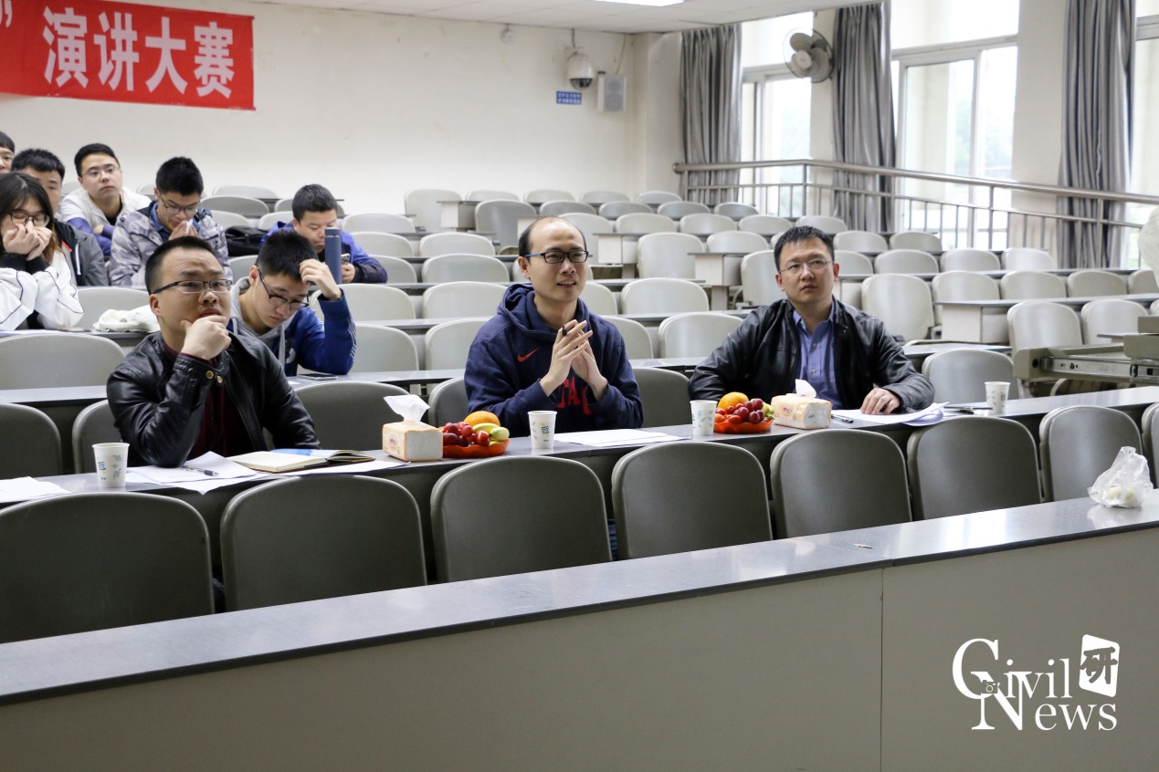 王平教授认真观看参赛选手的演讲