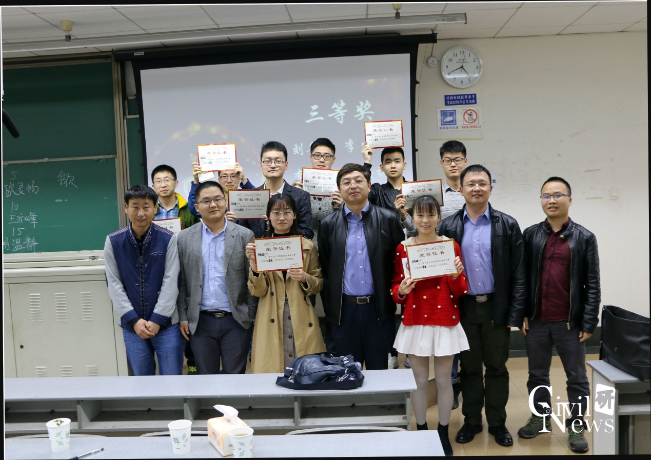 经过一番激烈的较量,决赛持续到下午五点。各位评委老师对比赛进行了总结,铁二院的各位评委嘉宾表扬了各位参赛选手PPT的制作技巧及个人演讲表现,并结合工作实际指出其中的缺点和不足。王平教授对各位参赛选手认真积极对待比赛地态度以及提升自我做出的努力给予极大的肯定,同时指出在PPT制作技巧及演讲者自我表达能力等方面仍然需要不断地努力和改进,希望每一位研究生要不断去完善自我,提升自我,精益求精。最后,王平教授宣布此次比赛结果:一等奖获得者为李朋、杨翠平;二等奖获得者为:汪鑫、王丰、温静、王刘翀、赵泽明;三等奖获得者为韦安祺、王沂峰、刘冬娅、李少铮、李晨钟、欧灵畅、高天赐、于浩。王平教授对获奖同学表示祝贺,希望他们再接再厉,在研究生的学习中也能追求卓越、突破自我。最后为比赛组长陈嘉胤颁发“特殊贡献奖”,以表彰他在此次比赛指导师弟师妹PPT制作技巧及演讲方式中所做出的努力。