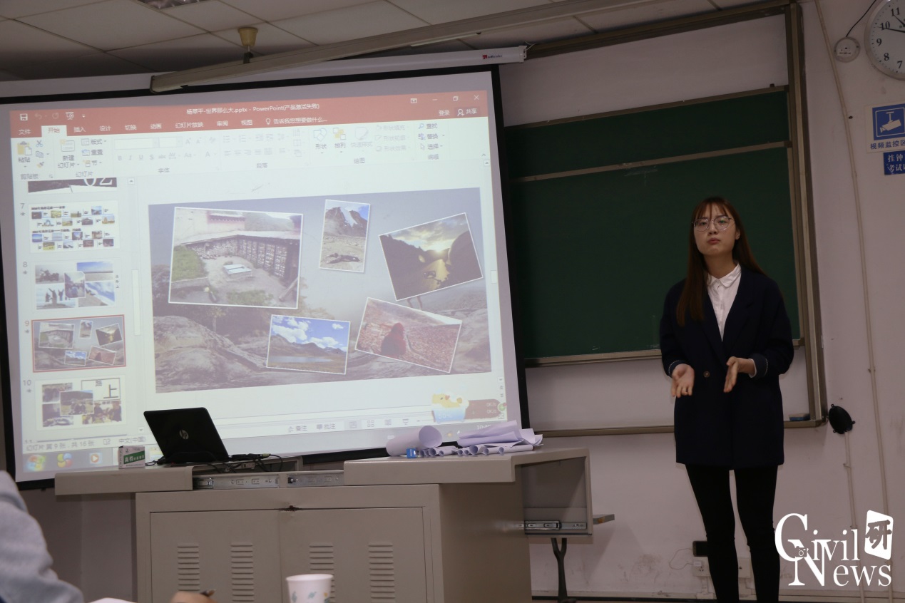 一等奖获得者杨翠平展示“世界那么大,我们该去看看”