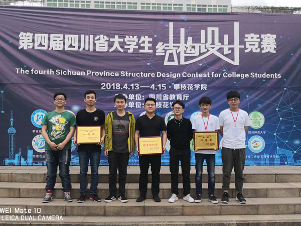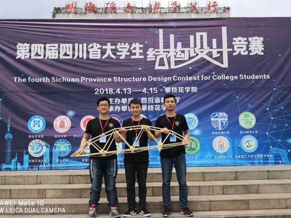 2018年4月15日,四川省第四届大学生结构设计竞赛暨全国大学生结构设计竞赛选拔赛在攀枝花学院落下帷幕。经过两天紧张的现场制作、赛场答辩及加载测试,由我校88038威尼斯教师余志祥、栗怀广任指导教师,邓宇航、路桦铭、顾天宇三名同学组成的建筑工程组代表队获得四川省第四届大学生结构设计竞赛建筑工程组一等奖;由袁冉、毛坚强老师任指导教师,侯禹辰、熊港、周凯歌三名同学组成的岩土工程组代表队获得四川省第四届大学生结构设计竞赛岩土工程组二等奖。