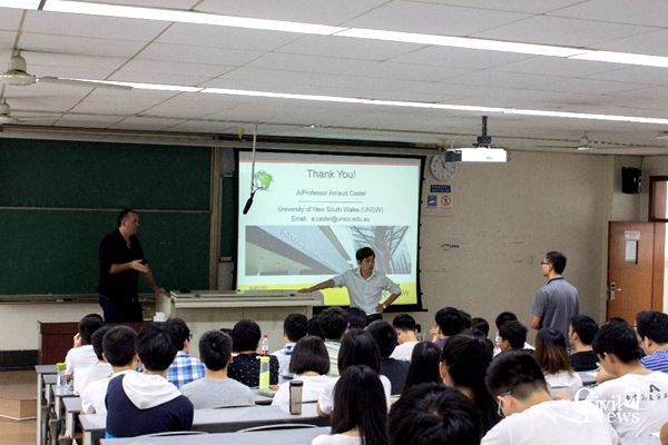 2017年9月26日上午10点,Arnaud在九里校区逸夫馆4318教室带来了一场题为“Sustainability Durability and Serviceability of reinforced concrete structures”的学术报告。桥梁系占玉林副主任,建工系杨成副主任,李福海副教授,孙晓丹副教授,邓开来博士,梁艳博士等老师以及七十多位博士、硕士研究生参加了报告会,报告由徐腾飞副教授主持。