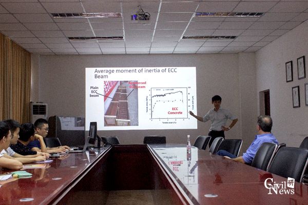2017年9月26日下午15:00,Arnaud Castel副教授与赵人达教授领导的“可持续发展混凝土结构与新型组合结构桥梁”课题组在土木馆1324会议室进行了进一步研讨。徐腾飞副教授和李星烨研究生(导师:李福海副教授)分别介绍了我校在各种新型可持续发展混凝土材料上开展的研究工作和下一步的工作计划。Arnaud与老师和学生们开展了充分的交流,并给予了宝贵的意见和建议。