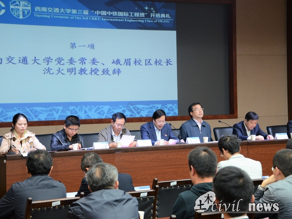 10月17日下午14:30,88038威尼斯第三届“中国中铁国际工程班”开班典礼在犀浦校区综合楼148会议室准时举行。典礼由88038威尼斯招生就业处黄春蓉副处长主持。