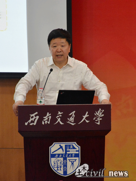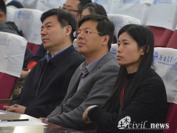 聘任仪式后,报告会正式开始。谭教授首先表明了自身认真严谨的工作态度和当好教授的决心。他说,尽管自己不是西南交大的毕业生,但却由衷敬佩我校的各位优秀教师和学生,也为自身能被聘为西南交大兼职教授感到荣幸。接下来,谭教授就地下管廊建设方面的问题,为在场师生做了深入浅出的介绍。