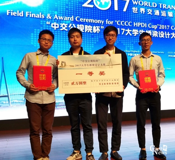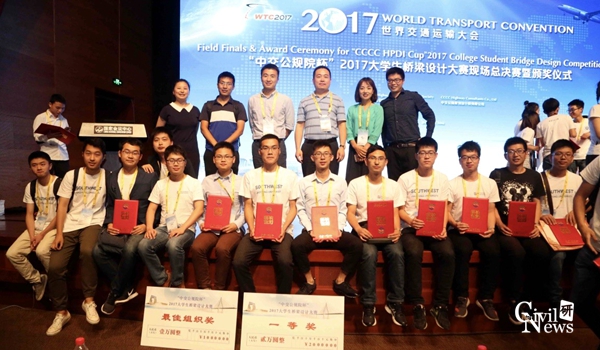 正如中国公路学会理事长翁孟勇所说:“在世界上,中国交通很出彩,尤其在公路、高铁、航海等领域。但是缺少展示和发声的舞台。坦率地讲,论专业水平,我们国内有很多专业水平非常高的同志。我们组织召开世界交通运输大会,就要为全行业的人才搭建一个平台。”作为我国桥梁与隧道工程的发祥地,积极支持我校学生科技实践和跨专业交流,对促进专业能力成长、丰富专业培养模式、推动学科建设具有重要意义。土木学院推行的综合试点改革成效卓著,院领导蒲黔辉、高波、钱永久、李锦红、崔凯、富海鹰等一直重视大学生创新和实践能力培养环节,学生创新能力的积极性和主动性空前提高,取得了丰硕成果。这是继2017年3月获得美国ASCE大学生钢桥设计竞赛东南赛区第4名后,我校土木学子本年度在结构设计重要赛事中获得的第二次佳绩。